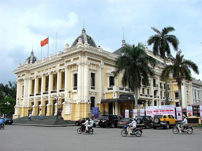 The Hà Nội Opera House is a smaller version of the Opéra Garnier in Paris, France.