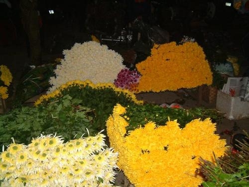 The Tay Tuu night flower market opens right at the flower field. Flowers are not displayed like in flower shops but they are piled up on paths at edge of flower fields, lightened up by flashlight. So buyers cannot select each flower. The transaction takes place very quickly. By about 3 am, the remaining flowers will be transported into large wholesale markets in the city.