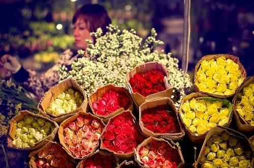 VGP - When the city falls into a deep sleep, flower traders at the flower markets such as Tay Tuu, Me Linh, Quang Ba ... become busy.