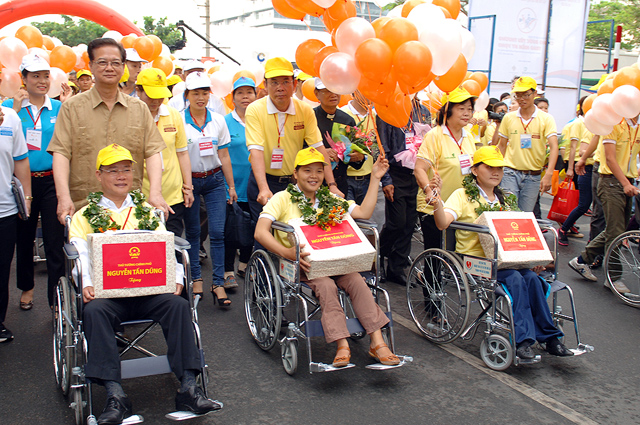 VGP – PM Nguyen Tan Dung on Sunday joined thousands of people in a charity walk in Phu My Hung urban zone, Ho Chi Minh City to show support for the Vietnamese disabled people and orphaned children.