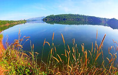 The Pleiku Plateau is renown as a drought area and is always short of water because it is thousands of meters above sea level. However, the lake has never been out of water and is full turquoise water all year round that looks like a giant mirror, reflecting the clouds and blue sky.
