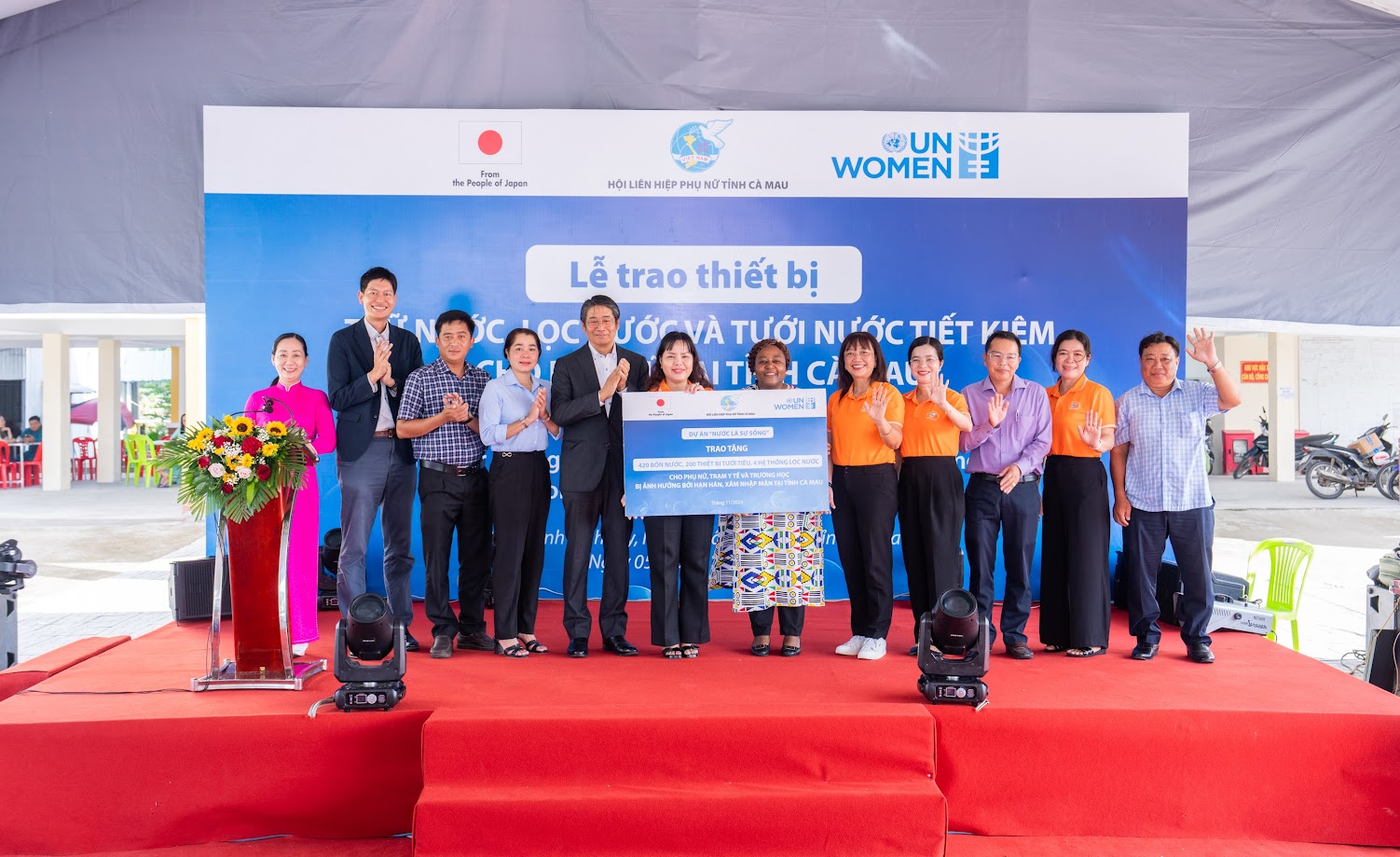 "We hope that this project will improve access to clean water for women and children living in the province of Ca Mau, and that this will lead to the revitalization of agriculture and other industries in the province, as well as to the securing of livelihoods for women in vulnerable positions", said Ambassador of Japan to Viet Nam Ito Naoki.